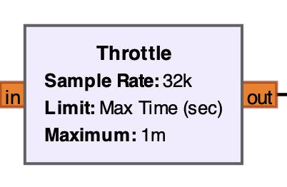 Der Drosselblock nimmt einen Eingangsdatenstrom entgegen und gibt denselben Datenstrom mit einer kontrollierten Rate aus. Er führt eine Zeitverzögerung zwischen den einzelnen Eingangselementen ein, um die gewünschte Ausgangsabtastrate zu erreichen. Der Throttle-Block verwendet einen zeitbasierten Mechanismus zur Regulierung des Datenflusses.Der Throttle-Block ist insbesondere dann notwendig, wenn die Verarbeitungsgeschwindigkeit des Flussdiagramms die Echtzeitfähigkeiten des Systems übersteigt