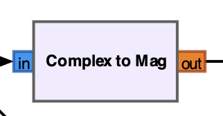 Dieser Block berechnet das Quadrat des Betrags einer komplexen Zahl. Je nach Anwendungsfall kann es erforderlich sein, den tatsächlichen Betrag zu verwenden (Complex to Mag), um z. B. die Signalstärke oder die Amplitude zu bestimmen, oder das Quadrat des Betrags (Complex to Mag^2) in Berechnungen wie der Leistungsschätzung oder der Energiedetektion zu verwenden. Die Formel