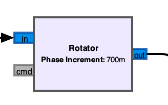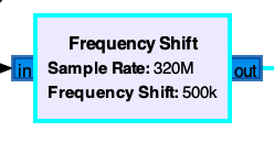Erhöht oder reduziert die Frequenz eines Signals um einen festen Wert. Dieser Block nutzt für die Berechnung des Frequenz Shifts den Rotator Block