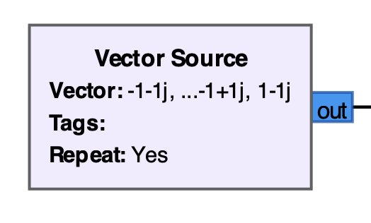 Der Vector Source Block wird dazu benutzt eine bestimmte Anzahl von Werten als Quelle für die weitere Verarbeitung zu generieren. Der Block erwartet als Vektor eine Liste von Werten. Diese können numerische Werte enthalten, wie Ganzzahlen, Gleitkommazahlen oder komplexe Zahlen, die die Werte des Signals darstellen. Die Werte werden in ihrer Reihenfolge gesendet. Wenn Repeat