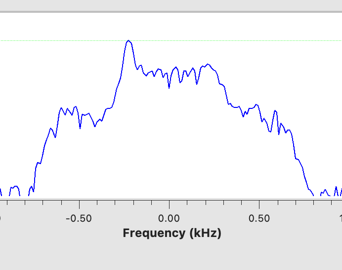 Schaut man genauer auf das Spektrum kann man erkennen, das das Signal um ca. 1kHz verschoben ist.