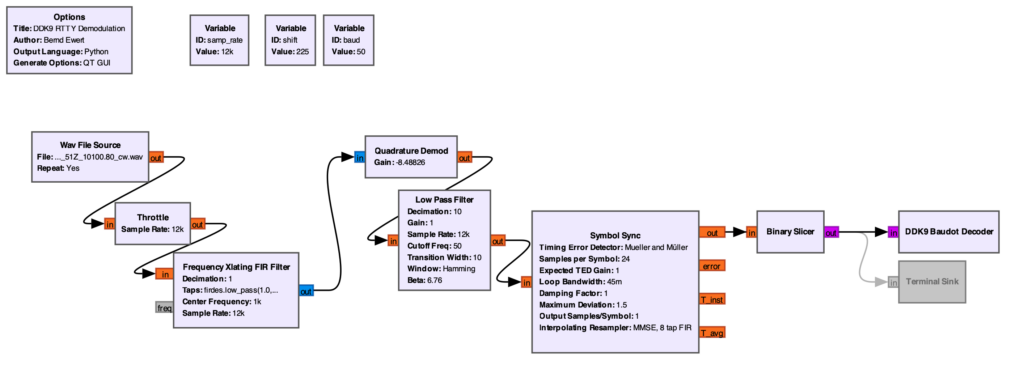 Die Demodulation eines Kurzwellensignals wie DDK9 klingt in der Theorie simpel, ist in der Praxis aber mit physikalischen Störfaktoren konfrontiert, die im GNU Radio Flowgraph einige Herausforderungen bereithält.