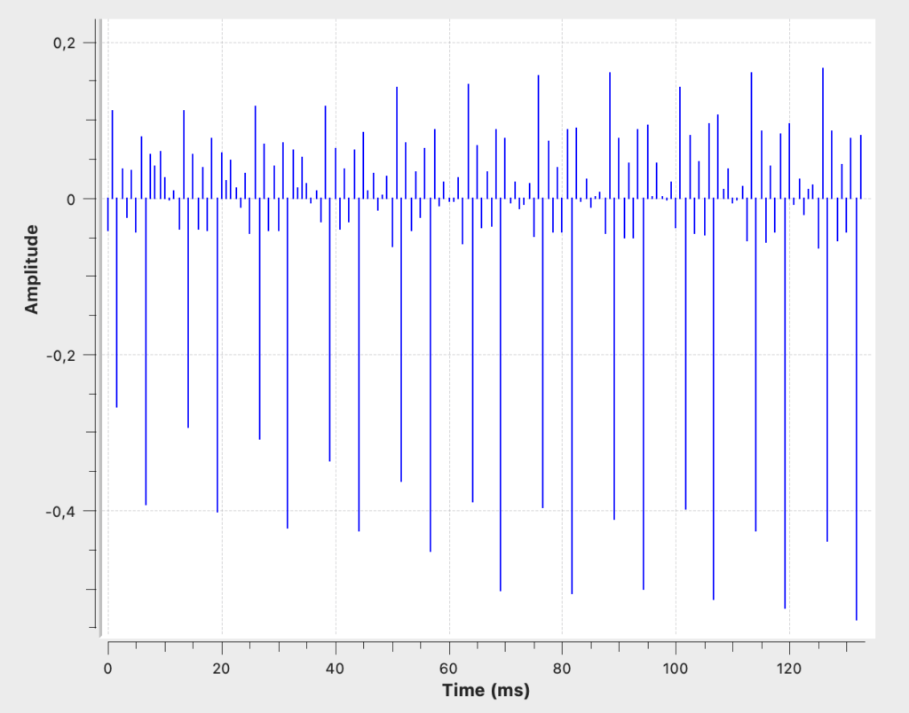 Die Spikes gehen hier fast ausschließlich nach unten (negativ). Das bedeutet, der Block erkennt dass sein interner Takt “zu früh” dran ist im Vergleich zur realen Flanke. Er muss also ständig “bremsen”.