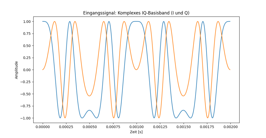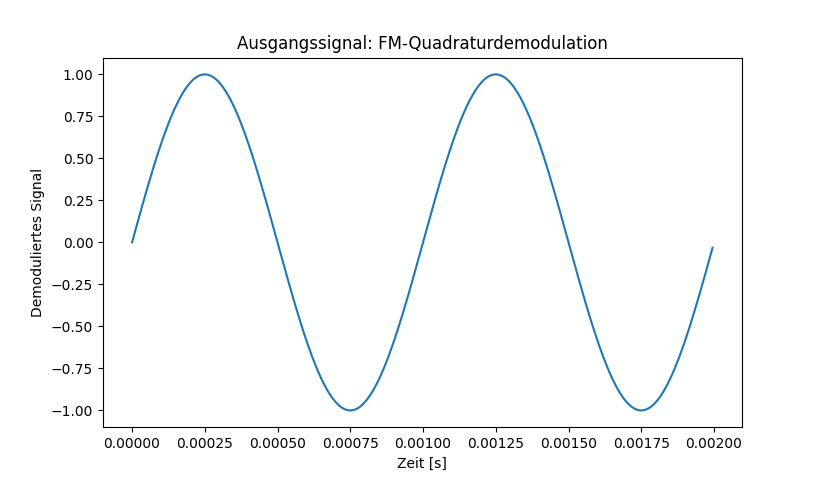 Das Folgende Bild zeit das Ergebnis der Demodulation eines einfachen frequenzmodulierten Einagangssignals: